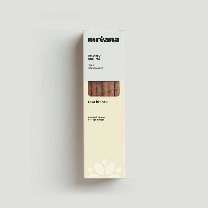 De aroma doce e profundamente floral o Incenso Nirvana rosa branca é afrodisíaco, alivia a tensão e o estresse.