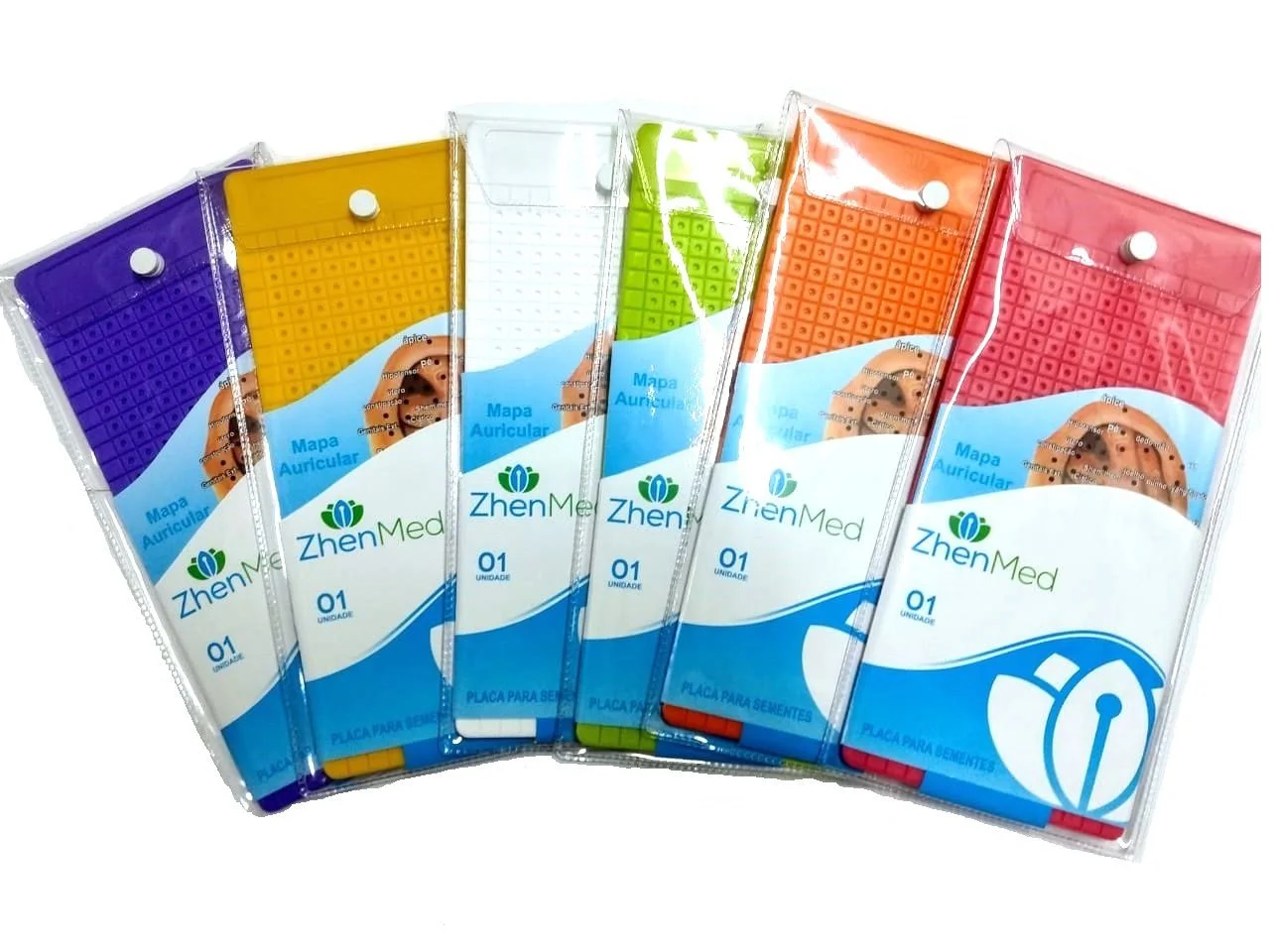 A Placa ZhenMed, pode ser utilizada com sementes ou esferas, possui duas faces, ideal para trabalhar com esparadrapo ou micropore.